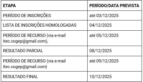 Dúvidas poderão ser esclarecidas por meio do seguinte email: itec_cogep@furg.br