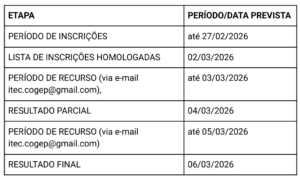 CRONOGRAMA DO PROCESSO SELETIVO: