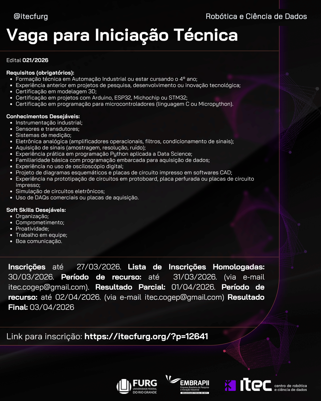 Dúvidas poderão ser esclarecidas por meio do seguinte email: itec_cogep@furg.br